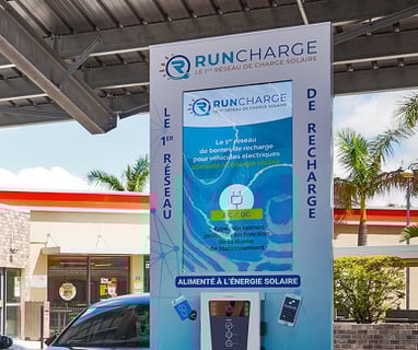 Les écrans sont placés sur les bornes de recharge de véhicules électriques de Run Charge, alimentées à l'énergie solaire. Placés a des endroits stratégiques, vous profiterez d'une large visibilité grâce aux totems publicitaires.